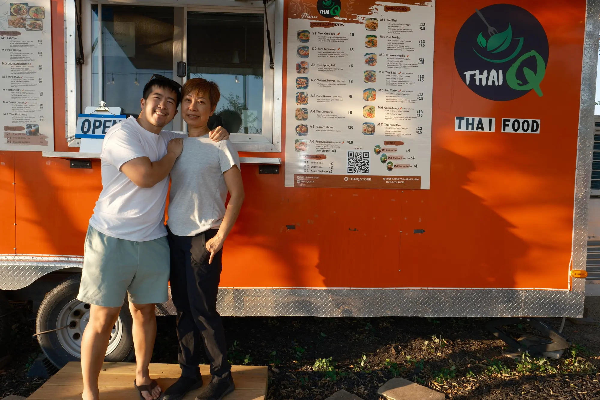 We are a new business whose mission is to bring authentic Thai cuisine to the Austin area. Experience the flavors of Bangkok street food right here in Austin, Texas. The heart of our operation is a mother and son dynamic duo, Lin & Moss. With twenty years in the food industry, serendipity and reoccurring dreams have lead them to establish Thai Q. Lin's passion for creating delicious Thai favorites started within her community. Lin has built her family on the belief that when you are provided the opportunity, you should always give what you have to support others. Lin raised her son Moss on this principle within the Buddhist community. Lin has crafted countless meals for the Buddhist monks and her local Thai community, carrying this intention within her heart. Through this, Lin felt called to be a chef. When she creates meals by hand, she witnesses how her food is always quickly devoured. Outside of being a chef and dutiful mother, Lin's loved ones know that she also holds stock in following her dreams, literally. Lin dreamt about her son Moss gaining a job opportunity and moving to Austin, which he did in 2018. Fortuitously, Lin recently had a dream that someone would be approaching her about selling a food truck. A few weeks later her clairvoyant dream lead to the purchase of this very truck and the motivation to take a risk on the Austin-area Food Truck scene. If you have taken the time to read this far, we appreciate you wanting to know the local lore of Thai Q. You made a wise choice on a meal cooked with heart. When you support Thai Q, you are additionally supporting your local Thai Buddhist community and a small business dreamer.